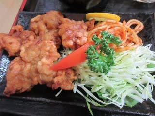 鶏唐揚げはやや小ぶりなのが6個。小鉢はイカ煮と共通です。
