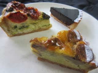 今回買ったタルト2種+サービスでいただいたキッシュ