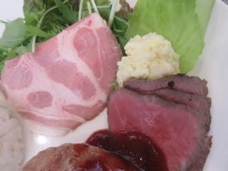 ランチメニューはハンバーグ、ロースカツ、カレー、唐揚げ、パスタ、スープ、サラダ、自家製ハム、ベーコン、焼豚など、お肉料中心で、お肉大好きな私はテンション上がりっぱなし!欲張りセット、チキン南蛮、麻婆豆腐にしました。