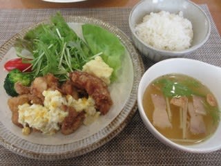 「チキン南蛮のタルタルは今から作るので、お時間かかりますがよろしいですか?」と聞かれ、今日は仕事が休みなのでOKしました。欲張りセット→麻婆豆腐→チキン南蛮の順に来て、先客なしでしたが全部揃うのに50分かかりました。普段なら50分なんて待てないけど、カウンター向こうの厨房で一生懸命作っているのが見えたし、後客が立て続けに3組来たので、店主さんが応援スタッフ要請のために電話をかけて一言「ヘルプです」と言っていたのを見たら、応援したくなっちゃいました。しばらくしてスタッフが来ましたよ。