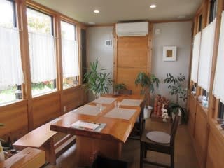 「あおいファームゲストハウス」さん(角田市岡字駅前北2-7)にランチを食べに行って来ました。来店前にお店に電話したら、とても丁寧な対応で第一印象good。駐車場はお店の前に4~5台程度だったかな。車を降りたら、店主さんがお店から出て来られて笑顔でご挨拶。店内入って左側にカウンター、テーブル席、厨房で、右手にグループ用の個室があり、個室を案内されました。ナチュラルで明るく、良い雰囲気です。