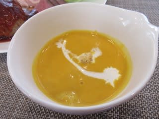 ハンバーグは厚みがあってふっくらジューシー。ローストビーフと自家製ハムはしっとり。どれも肉の旨みがしっかり感じられました。サラダの野菜も新鮮でした。スープはかぼちゃのポタージュで、ぽってり濃厚でカボチャの甘みが強かったです。欲張りセットにはマシンで淹れたコーヒーが付きます。しっかり濃いめのタイプでした。