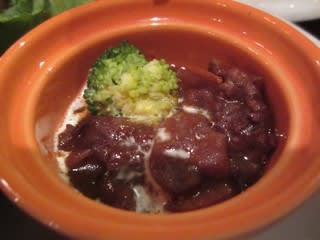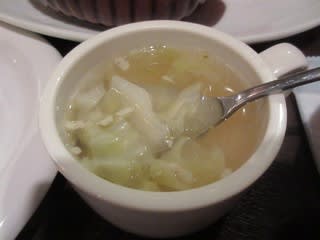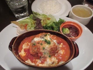 先客がいましたが既に食べていたので、提供までに5分かかりませんでした。早い提供、すばらしい。ハンバーグはやわらかめの食感で、ジューシーです。トマトクリームソースは、マッシュルームなどが入り、トマトの甘酸っぱさ、ミルクのマイルドな味わいなど、メリハリがある味でした。ビーフシチューかな?の他に、ポテトサラダや生野菜サラダ、キャベツ入りのコンソメスープ付きで、手作りですね。さっそく家でも、ハンバーグのトマトクリーム煮を作ってみましたよ。レパートリーが増えて嬉しい♪