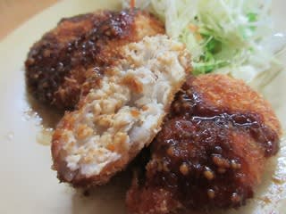 今日の日替わりランチは、蓮根メンチ(鳥)定食。先日、他店でレンコンハンバーグを食べておいしかったので、家でも作ってみたら好評でした。メンチカツも食べてみたくて、さっそく入店です。