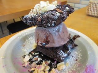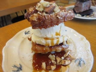 出来立てフロランタン&パフェは、濃厚バニラアイスを、クッキーでサンドし、キャラメルソースとナッツをトッピング。こちらも温かいクッキーと、キャラメルとバニラアイスの組み合わせがgood!