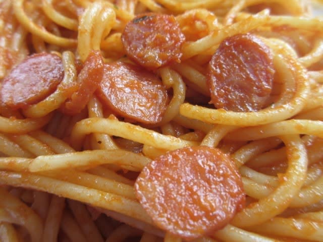 具材は薄~くスライスしたウインナーのみ!ピーマンも玉ねぎも入っていないし、粉チーズもタバスコもありません。コクと甘みがあって味は良かったです。
