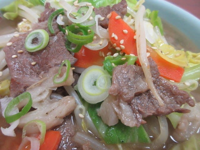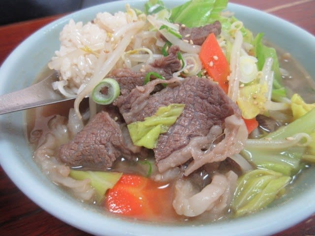 他所のカルビクッパとは見た目が違うので、お店の方に、これカルビクッパですかと聞いちゃいました。一般的なカルビクッパは、油が浮いた赤いスープで、牛肉、ぜんまい、豆もやしなどが入っていますが、食道苑さんのカルビクッパは、牛肉、キャベツ、にんじん、もやしなどがいっぱい入っています。辛みは別添えにしてもらいましたが、辛みを入れないスープは、醤油ラーメンスープのよう。野菜いっぱい醤油ラーメンのご飯バージョンって感じですね。あっさりしていてヘルシーでおいしい~。