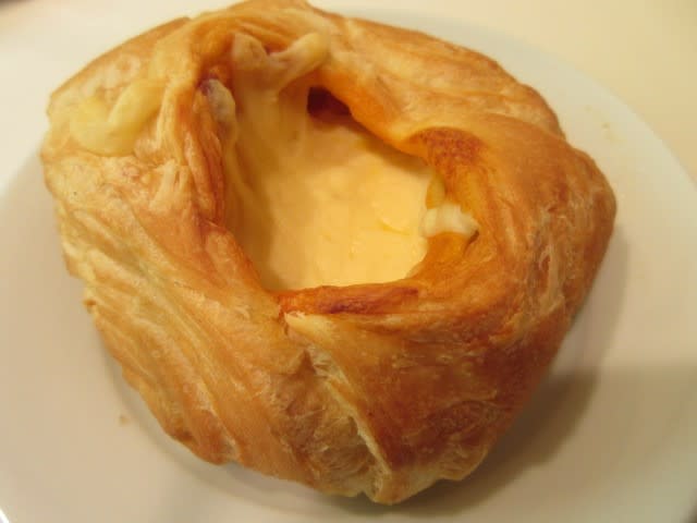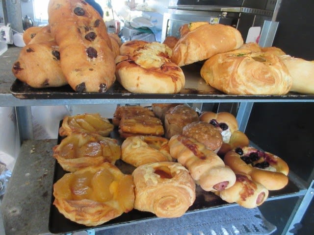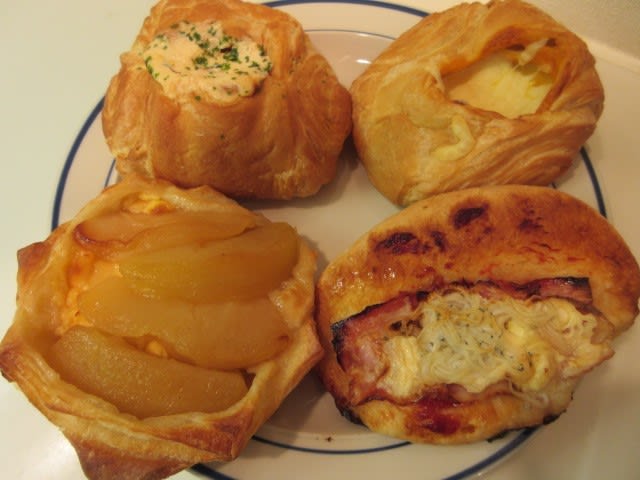 お店には、店主さんの自家製パンが売っていて、とってもおいしいんです。今日も、パンを買いに来る人がいました。今回買ったのは4個。りんごのデニッシュが250円で、春しらすとベーコン、明太子、チーズは各230円。種類によって生地の味や食感が違っていて、それぞれの食材によく合うんです。