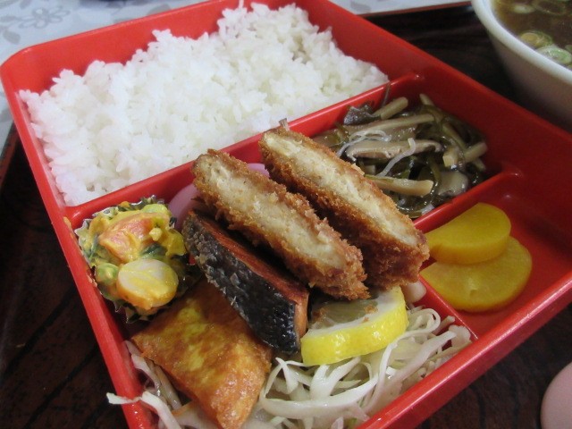 今回も、お弁当にしました。お弁当には、半そば250円、半はなそば280円、冷やし半そば250円(うどんも選べる)、半ラーメン300円を付けられます。