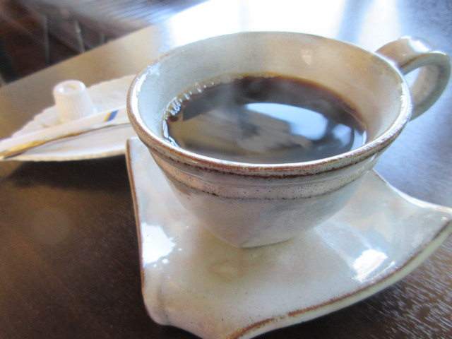 コーヒーにしたら量がたっぷりでした。お冷のグラスもきれいなので写真を載せました。